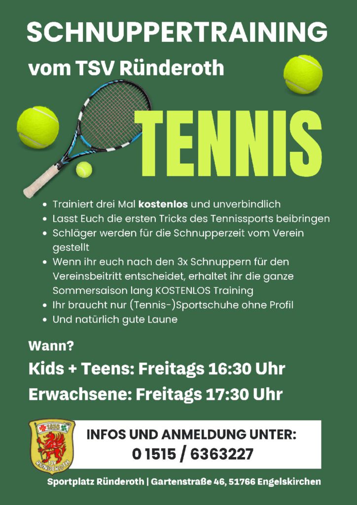 Schon seit den 50er Jahren wird am Ohl Tennis gespielt. Aus bescheidenen Anfängen hat sich eine der erfolgreichsten Abteilungen des TSV Ründeroth entwickelt. Wir verfügen heute über 3 grundsanierte Aschenplätze, ein schmuckes Clubheim eingebettet in einer der schönsten Sportanlagen des Oberbergischen. Bei uns spielen 2 Damen und 1 Herrenmannschaften um Meisterschaft und Pokal. Zudem sind einige Jugendliche in Spielgemeinschaften unterwegs. Die Förderung der Jugendspieler/innen ist unser besonderes Anliegen, dem wir mit fachlich und pädagogisch geschulten Trainer/innen nachkommen.